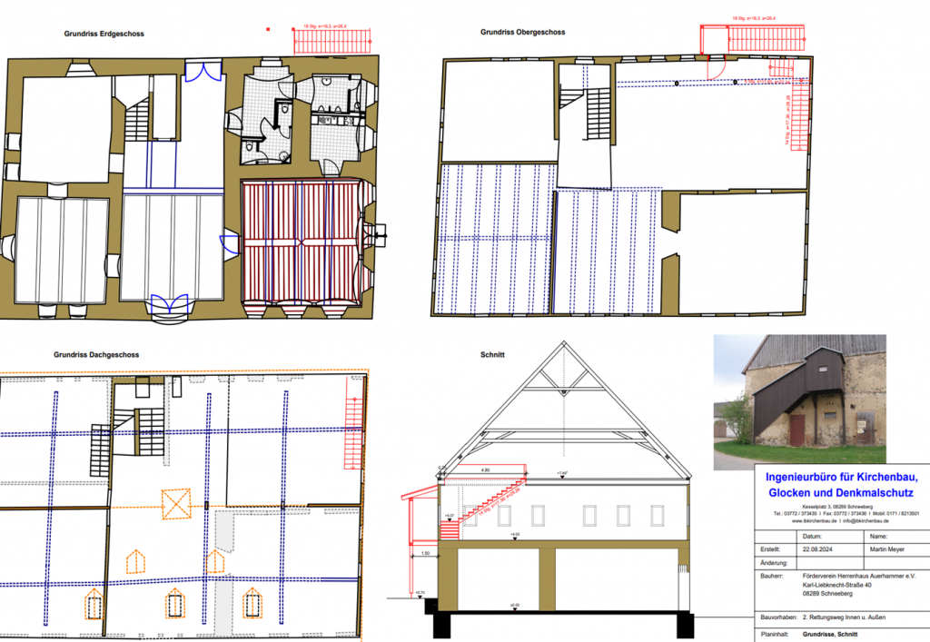 Um das erste und zweite Obergeschoss nutzen zu können ist eine von Außen begehbare Rettungstreppe notwendig.