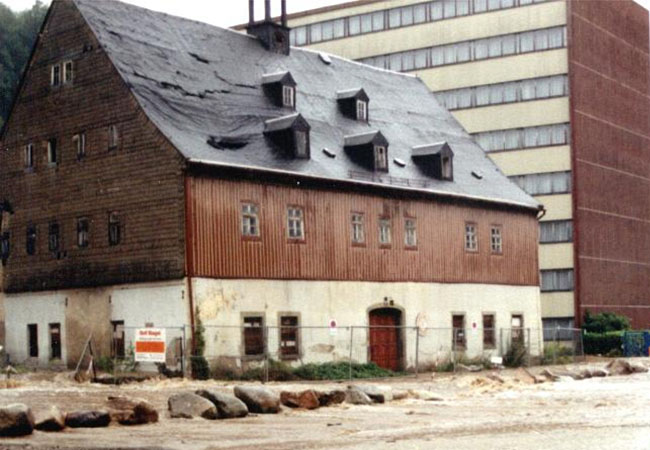 Weitere Decken im Haus sind eingestürzt, darunter die über dem Hausflur und über dem Knappensaal im ersten Obergeschoss bis zum Dachgeschoss. Zudem hat das Hochwasser dem Gebäude zusätzlichen Schaden zugefügt, indem es es mit Schlamm und Wasser überflutet hat.