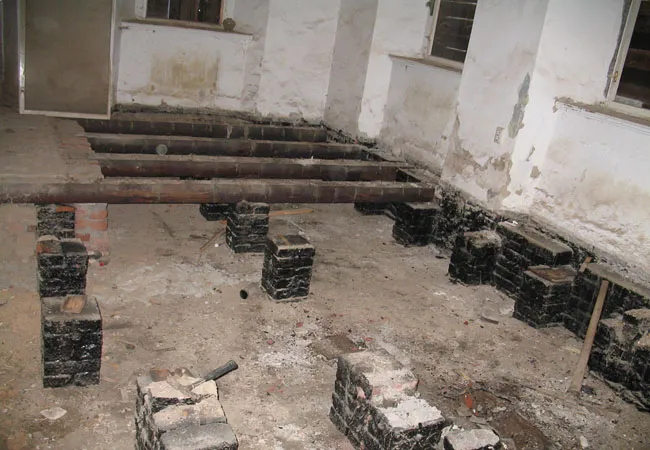 Abbruch des Fußbodens im Knappensaal / alte Unterkonstruktion wird sichtbar.