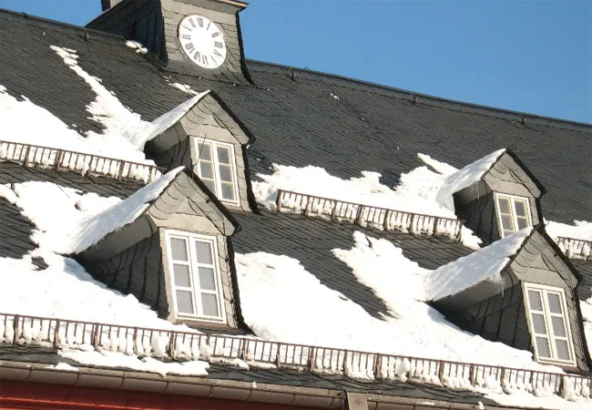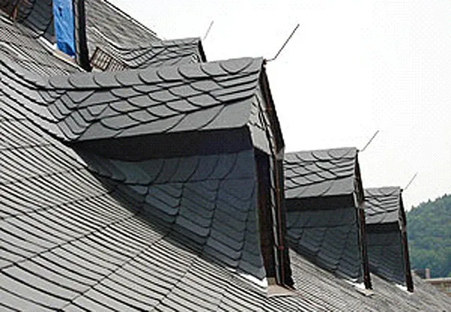 Eindeckung des Daches mit Schiefer, altdeutsche Deckung.